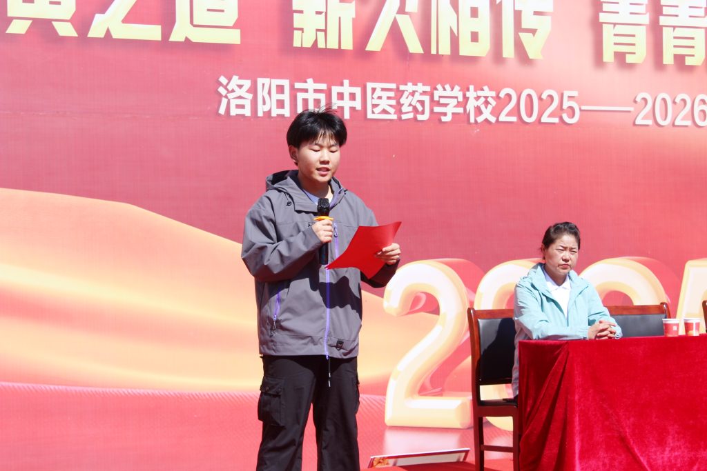 2025級(jí)新生代表李蕓潔發(fā)言,她講到開學(xué)時(shí),是學(xué)長學(xué)姐們?yōu)槲覀儫崆榉?wù),不辭疲勞的告訴我們宿舍樓、教學(xué)樓、餐廳的位置。軍訓(xùn)中,學(xué)校為我們準(zhǔn)備了清涼解暑的綠豆湯,班主任老師時(shí)刻陪伴身影和不斷的鼓勵(lì)眼神,使我們時(shí)刻感受到老師和同學(xué)們的溫暖和關(guān)愛。在接下來的學(xué)習(xí)和生活中,我們要有堅(jiān)定的信念和勇敢的心態(tài)面對(duì)各種困難和挑戰(zhàn),用心體會(huì)知識(shí)的魅力,課堂上課外中,主動(dòng)參與各種學(xué)習(xí)活動(dòng),積極進(jìn)取,不斷進(jìn)步,成為有擔(dān)當(dāng)、有本領(lǐng)的中醫(yī)藥傳承者。